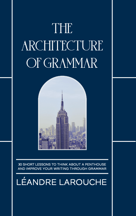 The Architecture of Grammar (2021) is a book by Léandre Larouche that teaches the fundamentals in a clear, engaging way for ambitious people to improve their writing.